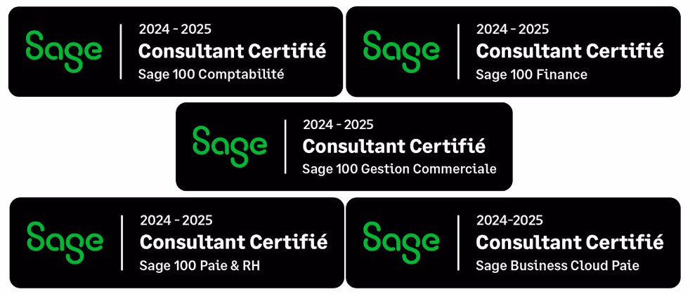 - Frédéric BOITTIN, certifié Sage 100 Gestion – Sage 100 Compta/Finance– Sage 100 Paie